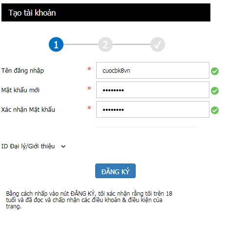 Bấm [ĐĂNG KÝ] một thông báo sẽ gửi tới chúc mừng bạn tạo tài khoản thành công.Và giờ đây chỉ cần gửi tiền vào cá cược và tham gia linkbk8 để biết các thủ thuật tin tức mới nhất từ nhà cái BK8 nha.